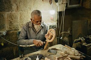 A nativity set maker in Bethlehem, Palestine, 2022. (35mm, Kodak Color Plus)